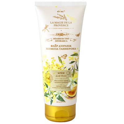 Удивительно нежный крем для тела обеспечивает коже потрясающий бархатистый уход, окружая её ласковым ароматом солнечного флёр д’оранжа и мимозы Таннерона, который поднимает настроение, наполняет ощущением счастья, пробуждает яркие и радостные воспоминания о красивых моментах жизни.