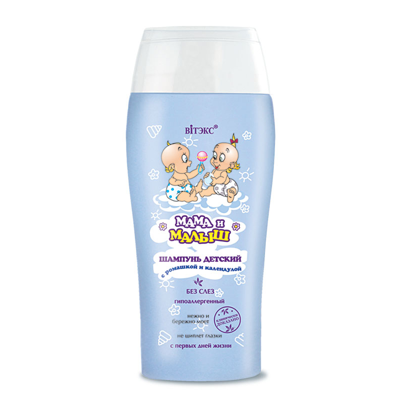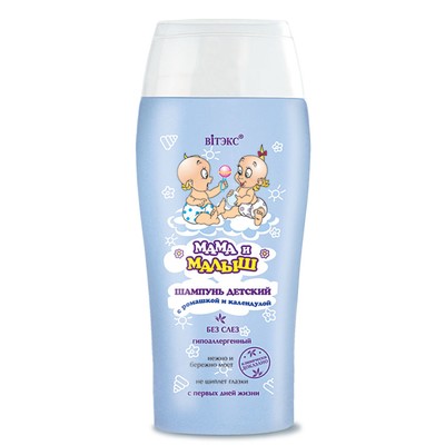 В его состав входят самые мягкие моющие компоненты, которые позволяют получить дерматологически безопасный, но эффективный шампунь, с помощью которого можно за короткое время промыть волосы ребенка, не отвлекая его от веселой игры в ванне, и не раздражая глазки малыша.