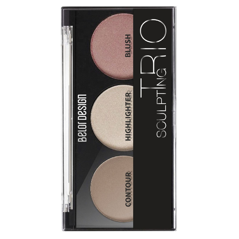 Палетка для макияжа TRIO содержит 3 идеально подобранных оттенка хайлайтера, румян и контуринга, которые подходят для всех цветотипов.