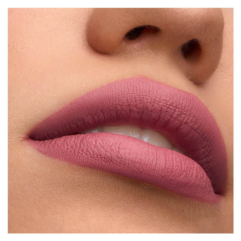 Жидкая флюидная текстура помады быстро высыхает после нанесения и создает невесомое покрытие с ультра матовым финишем.
