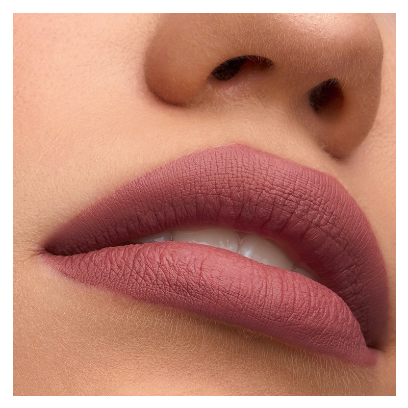 Жидкая флюидная текстура помады быстро высыхает после нанесения и создает невесомое покрытие с ультра матовым финишем.