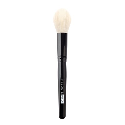 Натуральный ворс белой козы мягкий наощупь, но достаточно упругий, чтобы легко нанести и растушевать сухие косметические продукты.