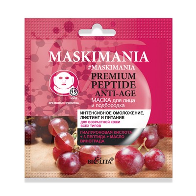 Premium Peptide Anti-age Маска содержит комплекс активных компонентов, направленный на омоложение кожи, поддержание её эластичности и упругости.