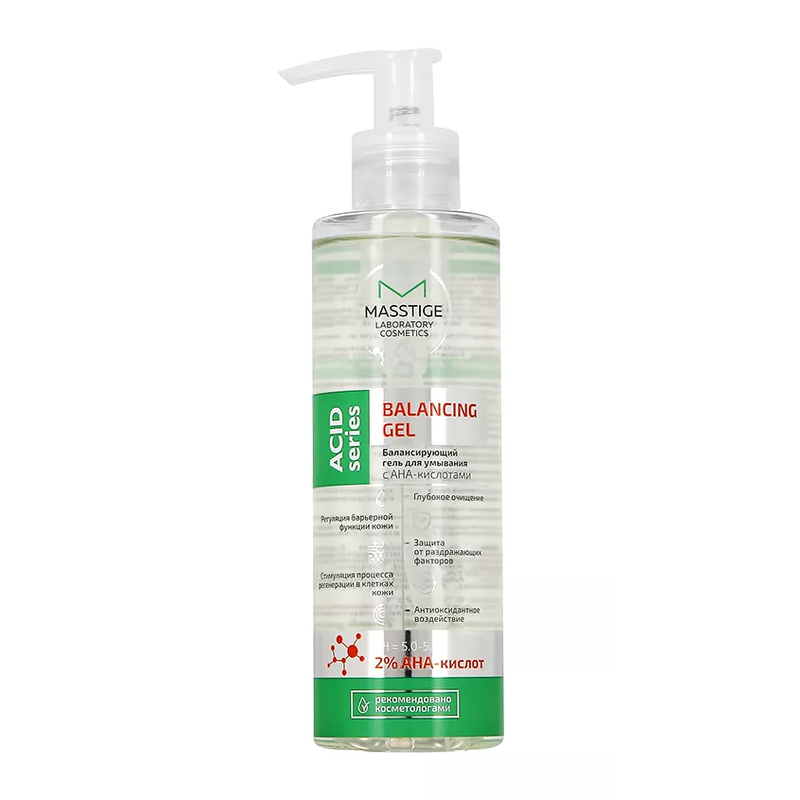 Балансирующий гель для умывания с AHA-кислотами от MASSTIGE предназначен для подготовки кожи к пилингу. Он обладает очищающим, обезжиривающим и кератолитическим действием, выравнивает поверхность кожи и снижает pH, обеспечивая равномерное проникновение пилингового состава. Комплекс AHA-кислот эффективно удаляет ороговевшие клетки, увлажняет и выравнивает рельеф кожи. Аллантоин и мочевина успокаивают и увлажняют, а бетаин поддерживает гидролипидный баланс, предотвращая пересушивание. Идеально подходит для подготовки кожи к последующим процедурам.
