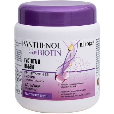 ПАНТЕНОЛ (провитамин В5) увлажняет и восстанавливает волосы, придает им дополнительную густоту и плотность, облегчает укладку, дарит волосам глянцевый блеск и роскошный объем.