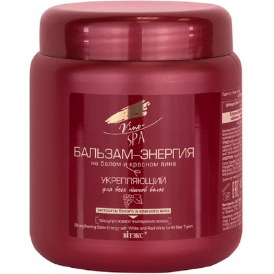 Изготовлен на основе натуральных безалкогольных высокоактивных концентратов белого и красного вина. Эти компоненты, введенные в состав бальзама, способствуют укреплению волос от корней до самых кончиков и предупреждают их выпадение.