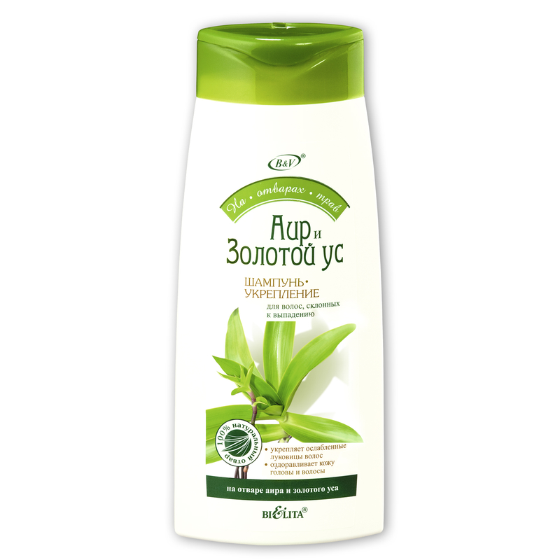отвар аира и золотого уса, лауретсульфат натрия, кокамидопропилбетаин, кокобетаин, кокамиде MIPA, лаурет-4, поликватерниум-7, хлорид натрия, поликватерниум-39, лимонная кислота, ЭДТА, парфюмерная композиция (бутилфенилметилпропианал), бензиловый спирт, метилхлоризотиазолинон, метилизотиазолинон.