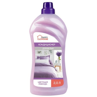Кондиционер для белья HAPPY HOUSE Цветущая лаванда незаменим при стирке в жесткой воде, придает белью мягкость и приятный свежий аромат, обеспечивает легкое глажение, убирает статическое электричество.