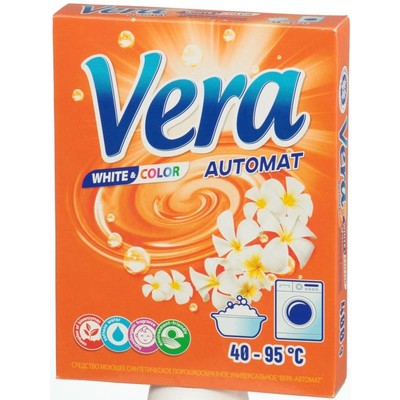 Стиральный порошок VERA предназначен для стирки в стиральных машинах любого типа. Стиральный порошок содержит комплекс элементов, которые улучшают качество стирки и позволяют использовать небольшое количество порошка. Он эффективно отстирывает различные пятна, сохраняя яркие цвета вещей, а также позволяет добиваться великолепной белизны без кипячения.