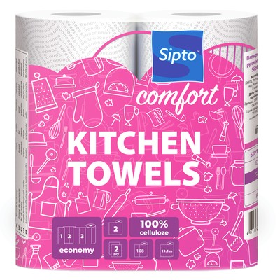 Продукт: двухслойное бумажное кухонное полотенце.Номинальное количество: 2 рулона